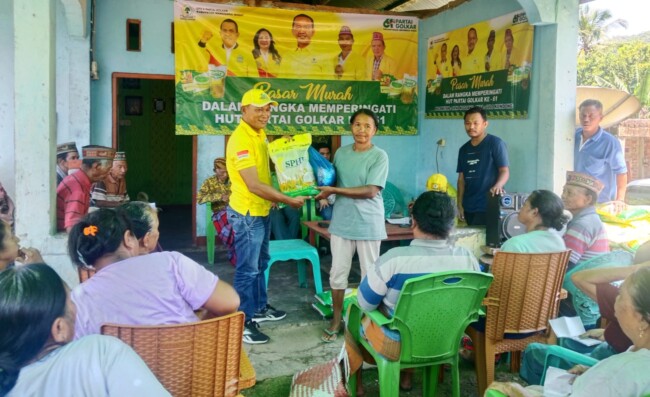 LABUANBAJOVOICE.COM – Perayaan Hari Ulang Tahun (HUT) ke-61 Partai Golkar di Manggarai Barat tahun ini tampil berbeda. Tidak lagi sekadar seremonial di kota, melainkan hadir langsung ke desa-desa dengan aksi nyata berupa pasar murah sembako.