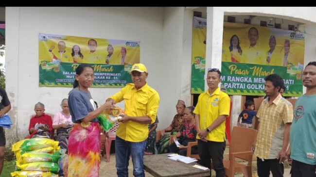 LABUANBAJOVOICE.COM – Dalam rangka menyongsong Hari Ulang Tahun (HUT) ke-61 yang jatuh pada 20 Oktober 2025, Partai Golkar Kabupaten Manggarai Barat menggelar aksi sosial bertajuk pasar murah di Kecamatan Mbeliling, Rabu (1/10/2025). Paket sembako disalurkan untuk masyarakat yang tidak mampu, janda, serta penyandang disabilitas di tiga desa.