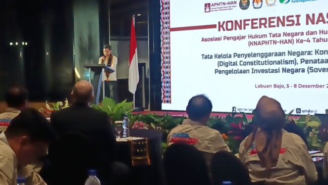 LABUANBAJOVOICE.COM — Asosiasi Pengajar Hukum Tata Negara dan Hukum Administrasi Negara (APHTN-HAN) resmi membuka Konferensi Nasional ke-IV Tahun 2025 di Ballroom Meruorah Komodo Labuan Bajo, Kabupaten Manggarai Barat, pada Jumat (5/12/2025) malam.