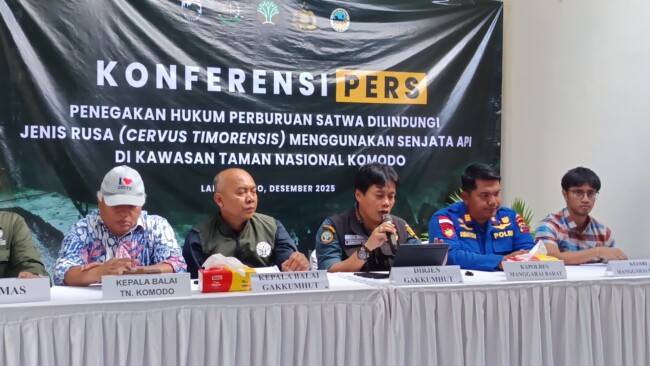 Tiga tersangka tersebut masing-masing berinisial AB, AD, dan Y, yang diamankan dalam operasi gabungan Balai Gakkumhut Jawa Bali Nusa Tenggara (JBN), Balai Taman Nasional Komodo, KP IBIS-6001 Korpolairud Baharkam Mabes Polri, KP Padar-3018 Direktorat Polisi Perairan Polda NTT, serta Polres Manggarai Barat.