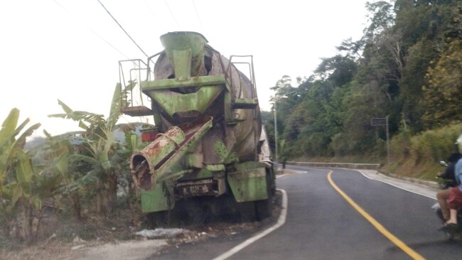 LABUANBAJOVOICE.COM — Keberadaan satu unit truk mixer (truk molen) dengan nomor polisi B 9739 H yang rusak dan dibiarkan terparkir selama hampir lima tahun di ruas jalan Trans Flores Labuan Bajo–Ruteng tepatnya di Cabang Langgo, Desa Wisata Wae Lolos, Kecamatan Sano Nggoang, Kabupaten Manggarai Barat, kini menjadi ancaman serius bagi keselamatan pengguna jalan dan wajah pariwisata Manggarai Barat.