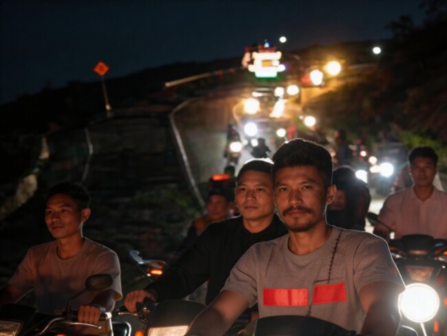 Deru mesin kendaraan berpadu dengan lantunan takbir, tahmid, dan tahlil yang menggema sepanjang perjalanan.