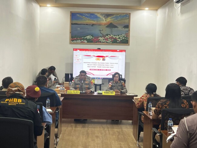 LABUANBAJOVOICE.COM — Kepolisian Resor (Polres) Manggarai Barat menggelar Forum Konsultasi Publik (FKP) bersama berbagai elemen masyarakat di Labuan Bajo, Kabupaten Manggarai Barat, Nusa Tenggara Timur, untuk menetapkan standar pelayanan publik tahun 2025.