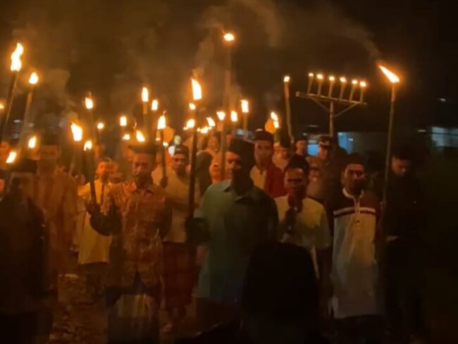 Dengan membawa obor di tangan, para peserta berjalan kaki menyusuri rute yang telah ditentukan sambil melantunkan takbir, tahmid, dan tahlil. Cahaya obor yang menyala di sepanjang perjalanan menciptakan suasana hangat dan penuh makna spiritual.